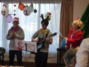 弾き語りライブで「上を向いて歩こう」を披露し、利用者様も一緒に歌い楽しまれました。