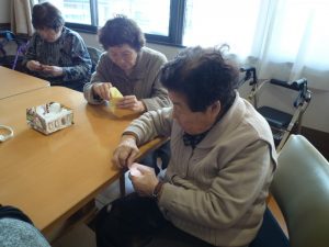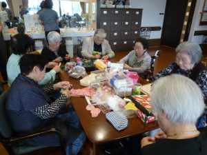 プレゼントを見て「可愛い」と笑顔で喜ばれ、早速杖やご自宅の鍵に付けて帰られる利用者様もいらっしゃいました。