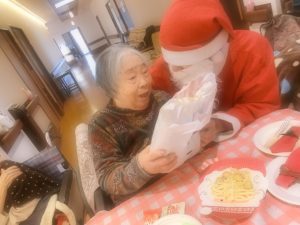 沢山のサンタさんが一人一人にプレゼントを渡しに来てくれて、思いがけないプレゼントに大変喜んでおられました☆