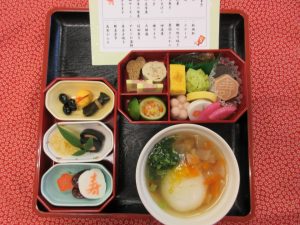 元旦の食卓を彩るお節料理やお雑煮…。各入居者に合った食事形態で提供しています。