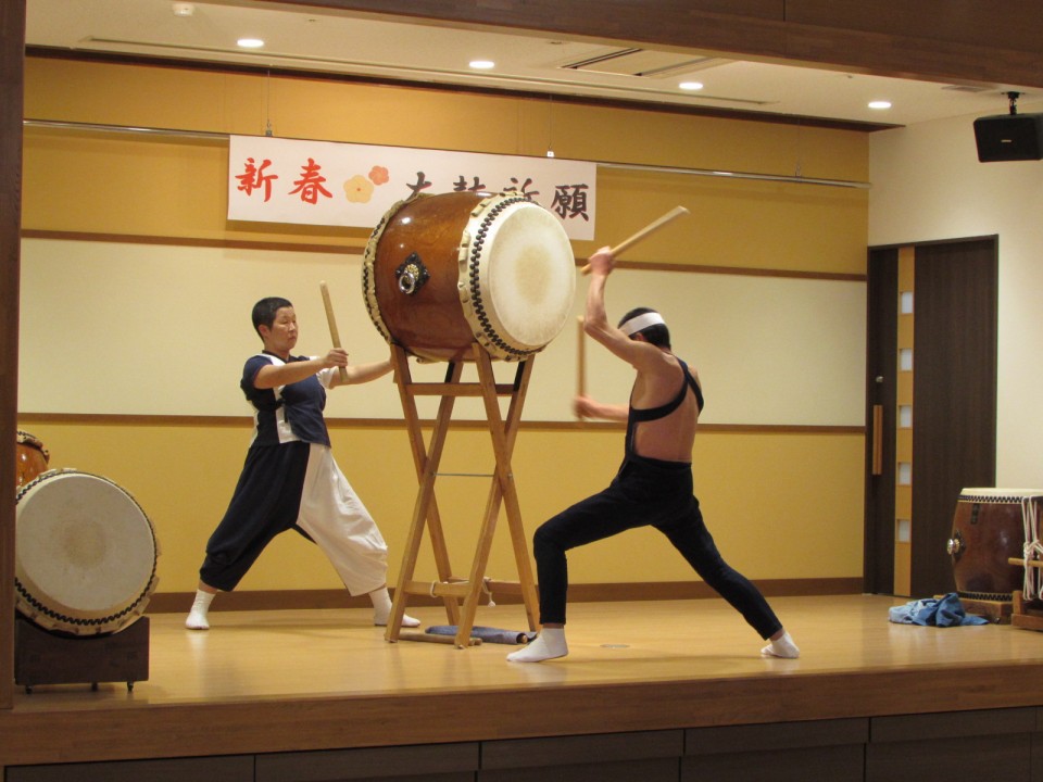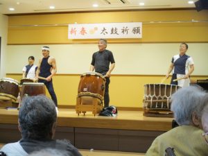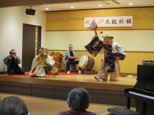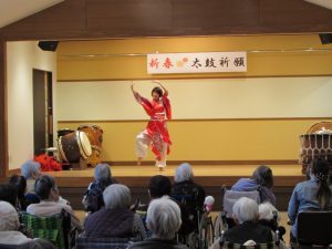 新しい年の訪れを祝う舞いと太鼓祈願は、迫力と活気に満ち、ご利用者の皆様も、大きく手拍子をしながらとても楽しんでおられました!!