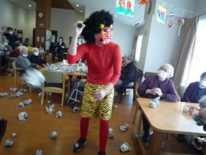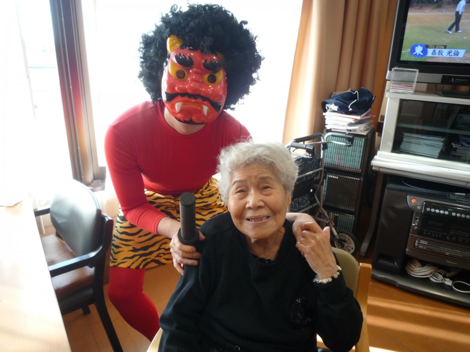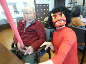 今年の鬼はとても優しく、最後には利用者様と写真撮影し楽しい豆まきとなりました。「今日は楽しかった」「面白かったね」と多くの利用者様が話されていました。