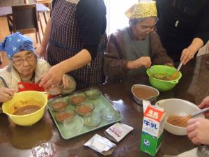 午前中に入居者の方と一緒にチョコババロア作成!