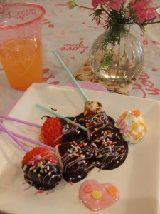 ”イチゴ・バナナ・マシュマロ”に溶かしたチョコを付けて、チョコスプレーやチョコペンでデコレーションをしながら楽しんで頂きました。