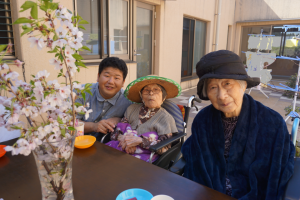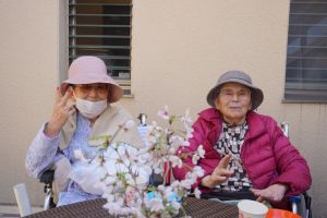 今日は天気が良かったので中庭で茶話会をしました(^^♪