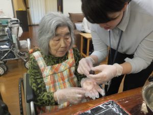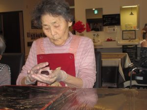 平成最後の日にショートステイにて桜餅作りを行いました。