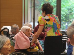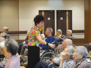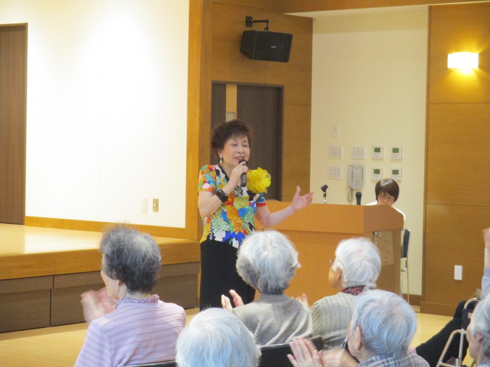大庭照子さんの優しく、力強い歌声に合わせ、ご入居者の皆様も歌を口ずさみ、懐かしんでいらっしゃいました(*^_^*) ♪