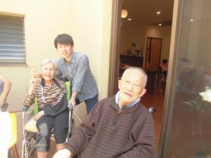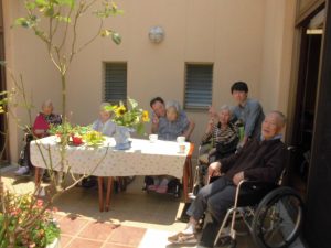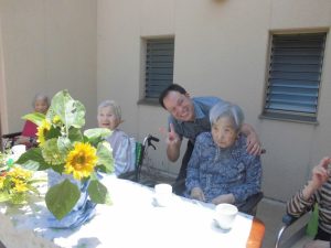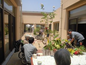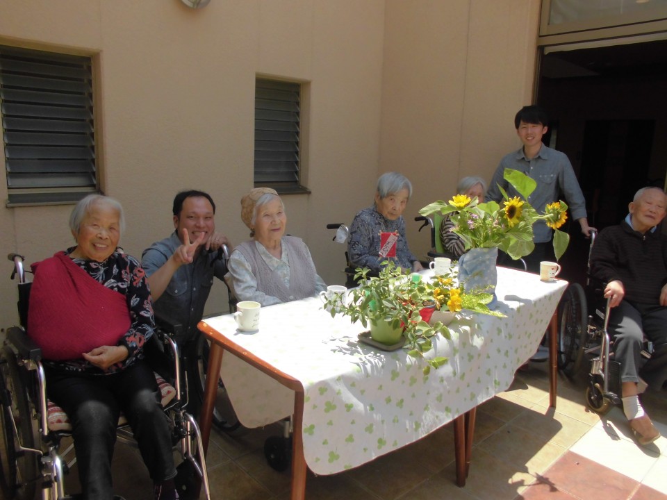 中庭で、茶話会をしました!☼(もみじ・ぼたんユニット)