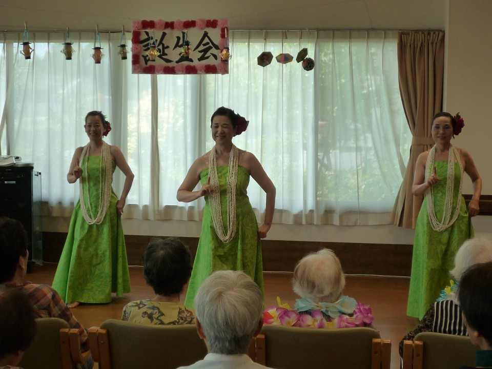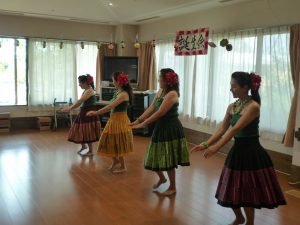 今月の誕生日会はフラダンスでした。