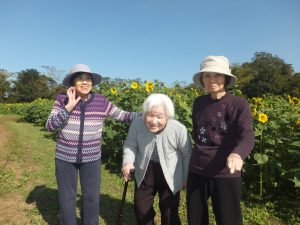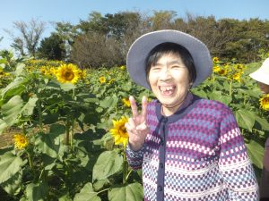 先月に引き続き短期入所事業所では外出を企画し、嘉島のゴッホひまわり園に行って参りました。