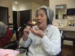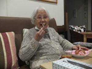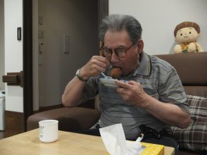 隣で、利用者様の「じー。」と熱い視線。「手を洗ってきたからさせて~。」とやる気満々です。