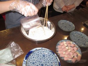 ホットケーキミックスをお水でこねて周りに付けます。