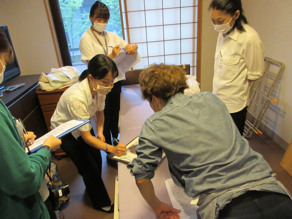 支援学校の先生が来荘され、シーツ交換を施設の現場はどう教えているのか?という内容で研修をしました。