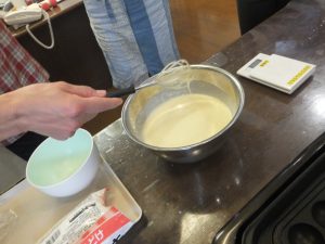 生地はパンケーキを作る材料を(ホットケーキミックス等)混ぜ合わせて・・・