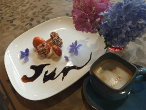 仕上げに、チョコレートソース・いちごソース・はちみつで味付けして
