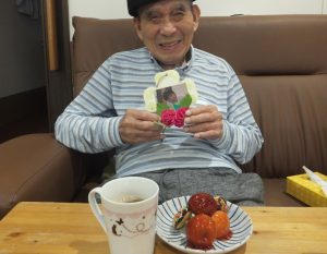 男性の利用者様に手作りの写真入りの壁掛け等をプレゼント!!