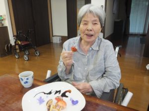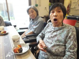 きのこの山風のお菓子を見て、「うわ~初めて食べるよ」「最高ぅ~」と喜んでいました(^-^)