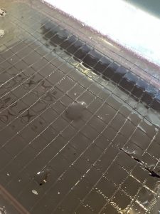 固まったゼリーを格子状にカット(^^♪