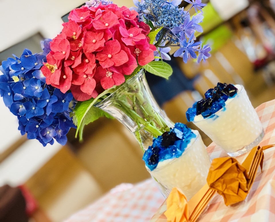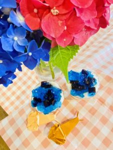 うめ・きくユニットにて、梅雨にちなんで「紫陽花ゼリー作り」をしました🐌