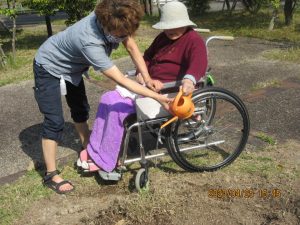 あるご利用者様は、「うちもスイカは作りよったよ」と大きくなったスイカに目を細めておられました。