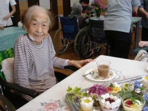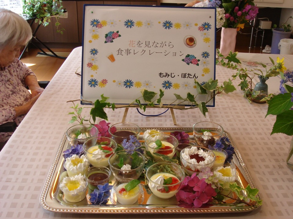 アイス、抹茶、杏仁豆腐、チョコの色とりどりのゼリーと豪華なバイキングに美味しく召し上がられて、とても喜ばれました(^O^)