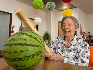 先日うめ・きくユニットでスイカ割りを行いました!(^^)!