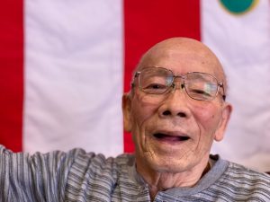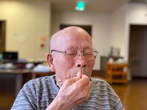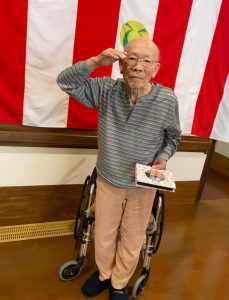 「写真を撮りますよ」と伝えると、自ら立ち上がられ、現役時代を思わせる見事な敬礼を見せて頂きました!