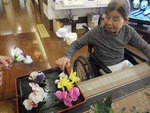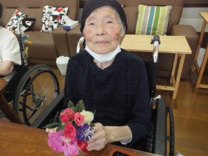 「バラは3個いれようか、きれいかねー。」と自身で選ぶことは、とてもうれしいことです。