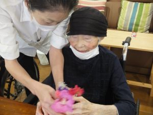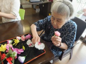 敬老の日に「コサージュ作り」を利用者様と一緒にしました。