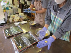 土手にあった、たくさんのススキを見つけ、皆さんが大好きなお月見団子を作りました。