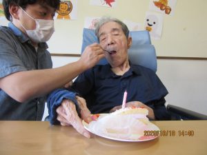 誕生者の方の名前を読み上げると、誕生会に参加された皆さんから「おめでとうございます」との声が聞かれました(人´∀`)