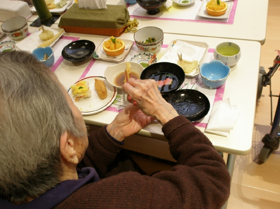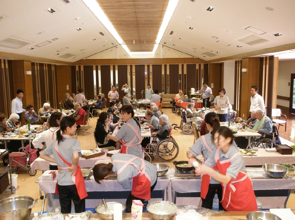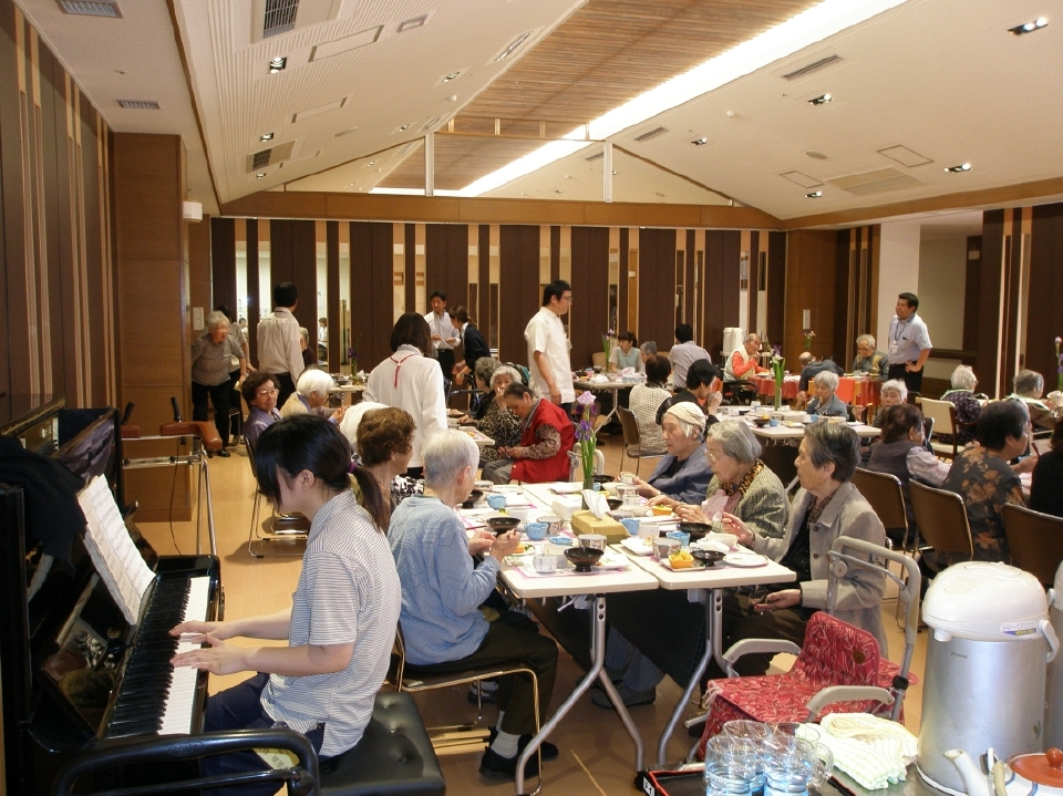 また、会場では職員によるピアノの生演奏もあり、いつもと違った雰囲気でご利用者の箸も