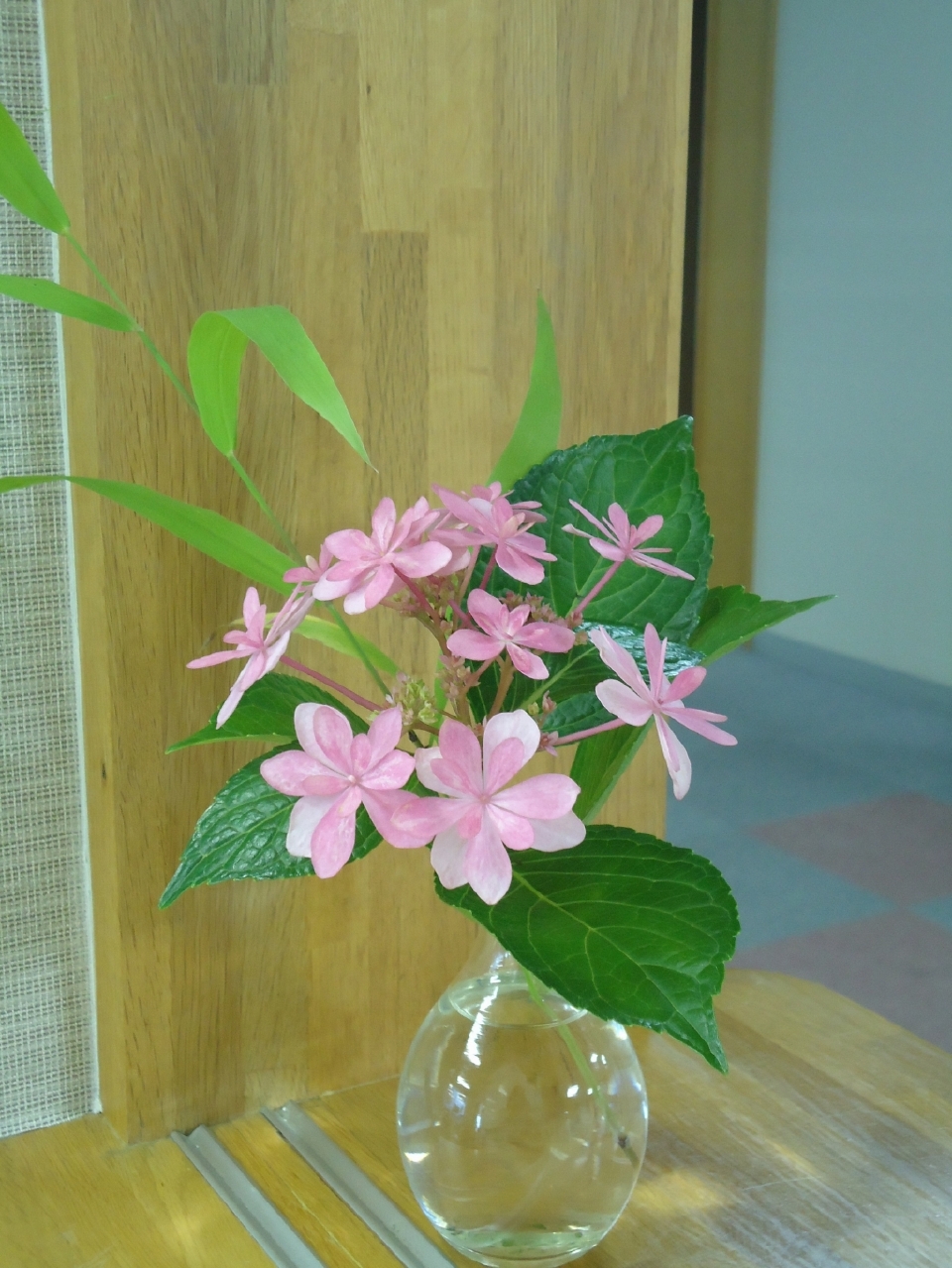Posted in ケアポート益城心癒されました。2014/07/03By ケアポート益城 ボランティアの楠田草紫様より、季節の花を生けて頂きました。 紫陽花の花がとても綺麗で心癒されました。 利用者の皆さんも通りながら、眺めていらっしゃいました。 ピンクのガクアジサイも可愛かったので、載せてみました。 真ん中の糸巻き機は明治時代の物で、すり鉢に生けられた花がとても合います。