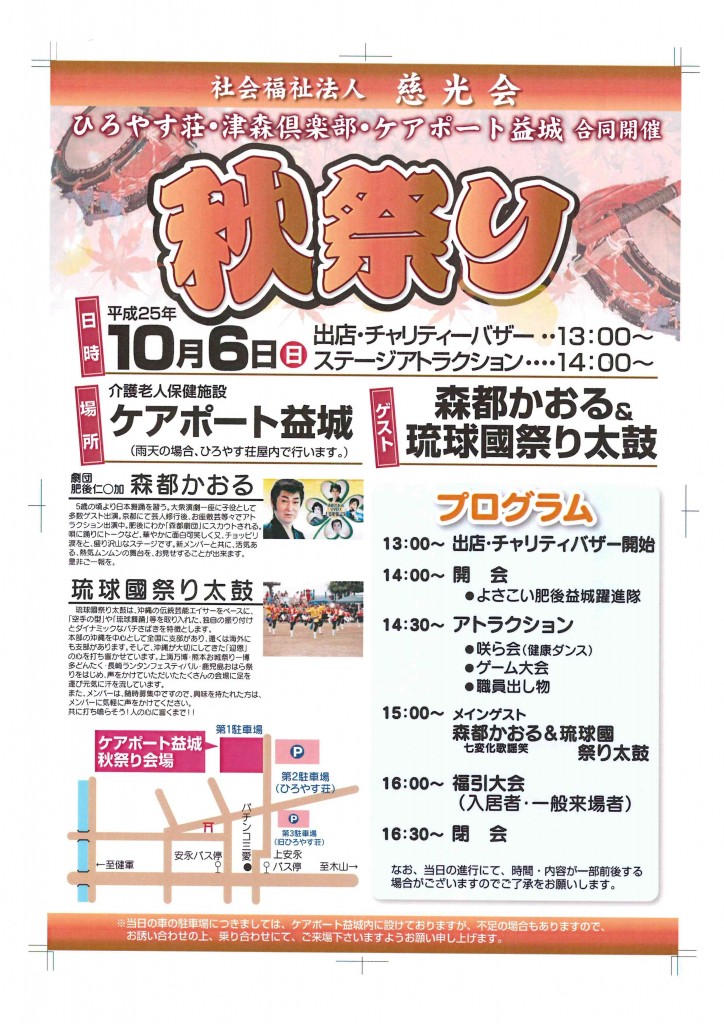今年の秋祭りは10月6日(日曜日)ケアポート益城にて行います。