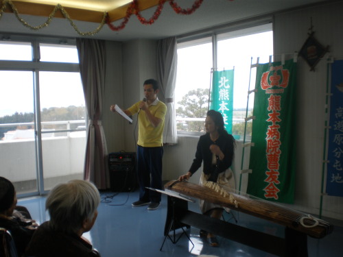 Posted in ケアポート益城曹友会様大掃除来所2011/12/17By 管理者 毎年恒例の、大掃除に曹友会の皆様にお越し頂きました。今年は、壁などの汚れまで落として頂き施設がとても綺麗になりました。又、箏の蓑田様・トランペット奏者佐々木様に演奏して頂き、車椅子を寄贈頂きありがとうございました。