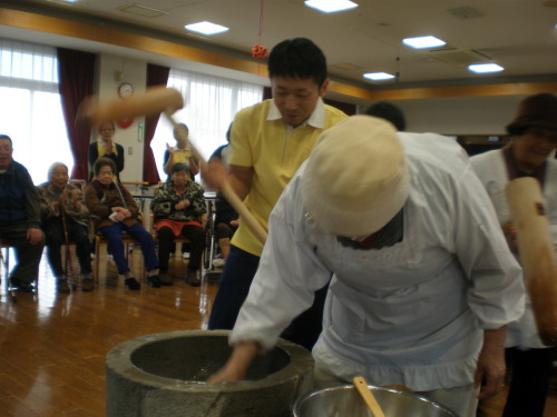 Posted in ケアポート益城餅つき2011/12/28By 管理者 毎年老人会様より、お越し頂いております。利用者様も慣れた手つきで、餅つきをされました。女性の方は餅を丸め楽しまれました。鏡餅は施設内で飾らせて頂きます。お疲れ様でした。老人会の皆様もありがとうございました。