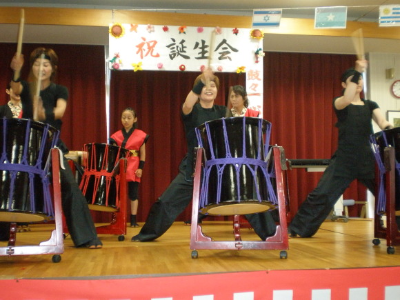 Posted in ケアポート益城6月誕生日会2010/06/20By 管理者 今月は、鼓々一心会様へ太鼓を披露して頂きました。女性のみのグループで現代的な太鼓を叩かれ、華やかな衣装で楽しませて頂きました。。体験等もあり、利用者様とても喜ばれました。