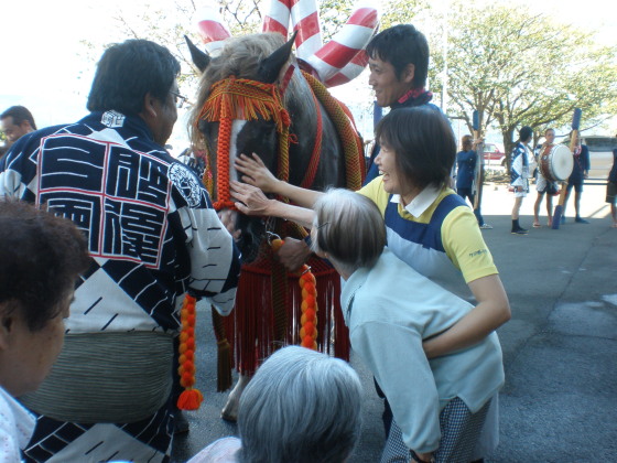 Posted in ケアポート益城飾り馬来所2010/09/18By 管理者 皆さん楽しみにされている、江原会様・肥後一会様来所されました。飾り馬と踊りの方の元気のある踊りを見せて下さいました。利用者様も扇子を手に踊られる姿があり、とても楽しそうでした。今年も楽しませて頂き、有難うございました。