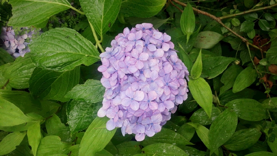 紫陽花(あじさい)・・・皆様ご存じの梅雨の草花の定番です。葉の色は土の酸性度で変わるそうです。
