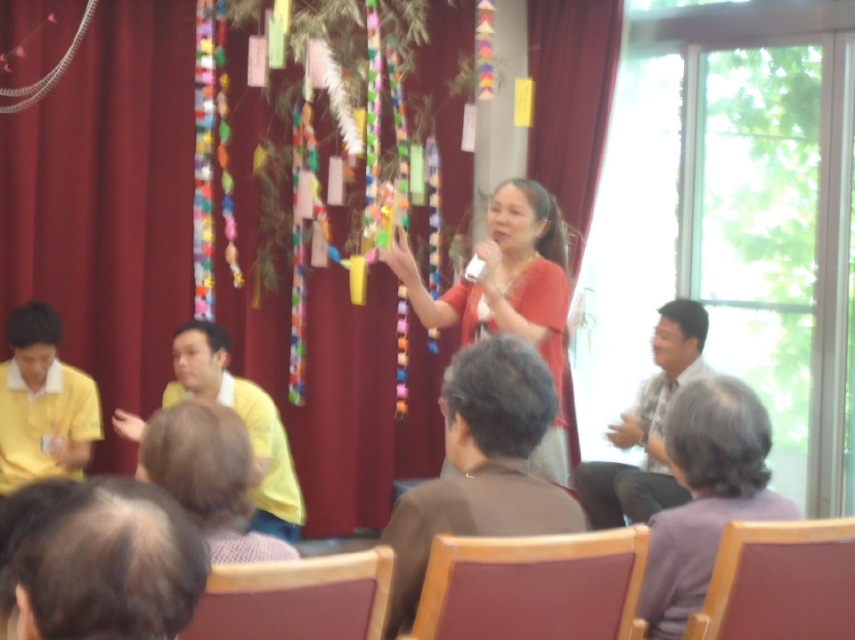 Posted in ケアポート益城7月誕生会2014/07/19By ケアポート益城 今月の誕生会は、カラオケの清水親幸様、紫奈津子様がお越し下さいました。 美空ひばりさんの曲や、島倉千代子さんの曲等熱唱されされました。 皆さんも手拍子をされ、知っている曲があると一緒に口ずさんでいらっしゃいました。 楽しいひとときをありがとうございました。