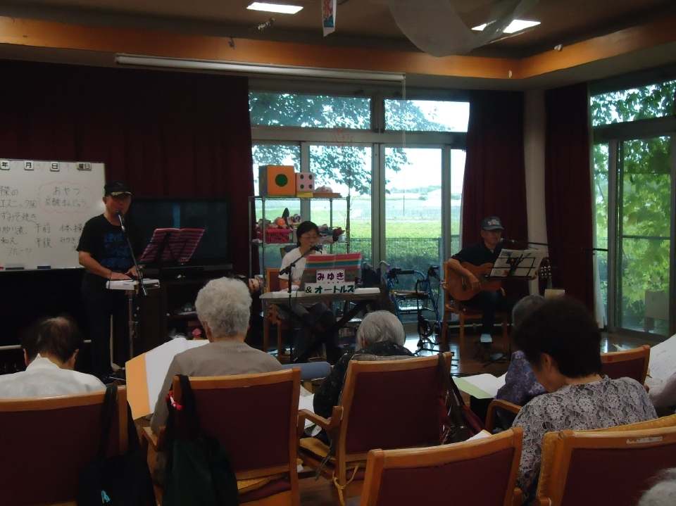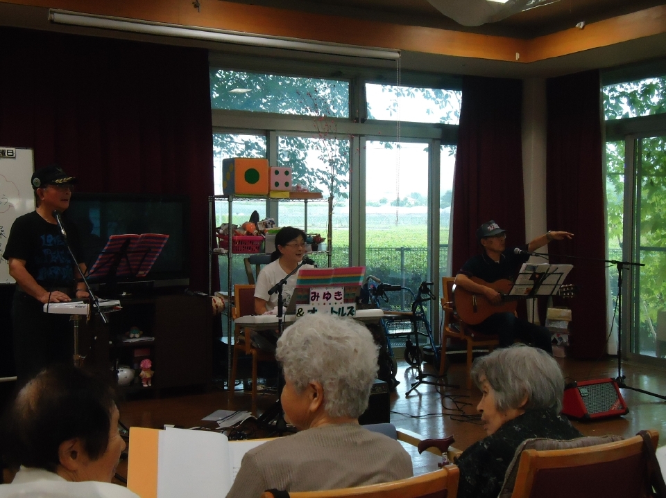 Posted in ケアポート益城通所レクリエーション2014/07/31By ケアポート益城 バンド演奏のみゆき&オートルズ様より、お越しいただきました。 ブルーライト横浜、瀬戸の花嫁や浜辺の歌など歌謡曲から唱歌、童謡14曲演奏いただきました。 利用者の皆さん一緒に歌いとても楽しんでいらっしゃいました。 有難うございました。また次回お待ちしております。