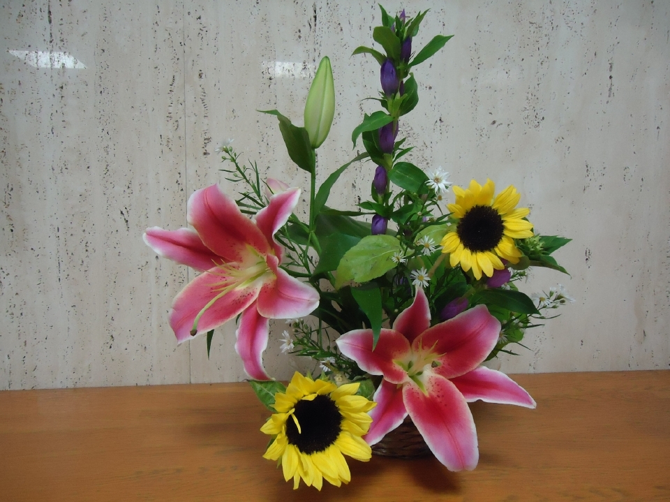 Posted in ケアポート益城福祉フラワーアレンジメントセラピー教室2014/08/01By ケアポート益城 花の万寿花園様来所され、福祉フラワーアレンジメントセラピー教室を行いました。 向日葵、りんどう、カサブランカ等を使用し、個人の好みでアレンジされました。 皆さん個性が出て、それぞれに上手にされていました。 完成したお花は、自宅に持ち帰られ、お部屋や玄関に飾って楽しまれます。 有難うございました。