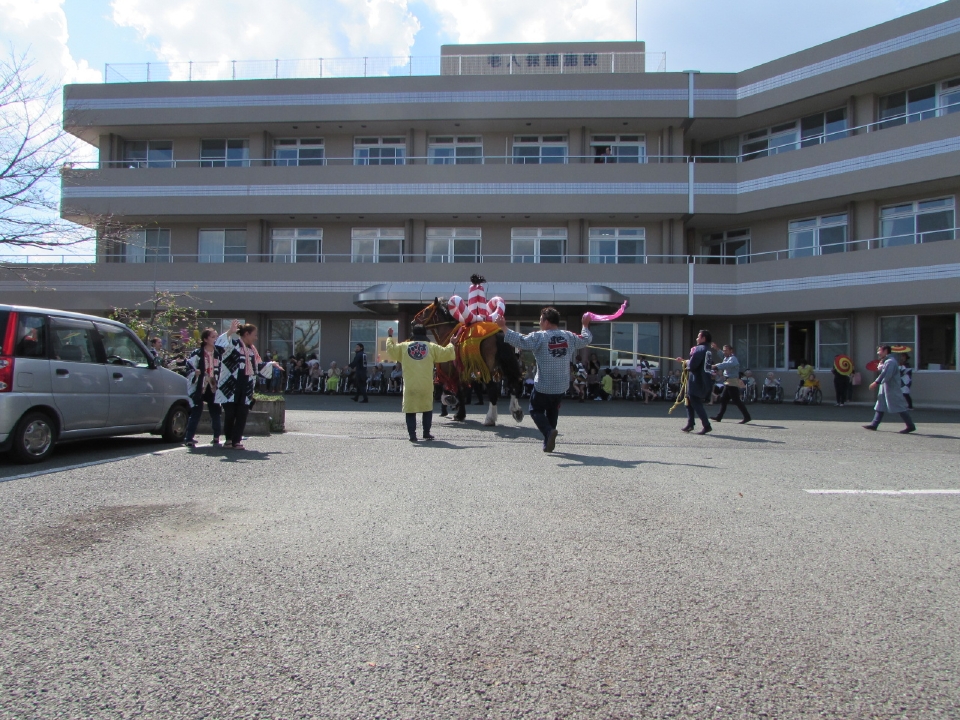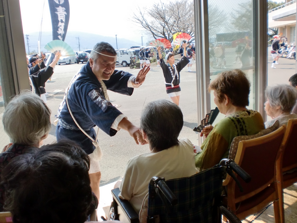明日(9/20)の随兵行列本番を前に、昨日(9/18)に青年江原会様が来所されました。 勢子の皆さんの威勢の良い掛け声や踊りをご利用者様は楽しまれました。 青年江原会の皆様ありがとうございました。