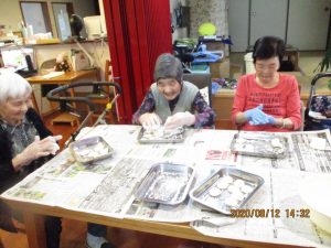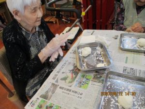 なごみユニットの皆さんで、協力してたくさんのお団子が出来上がりました。