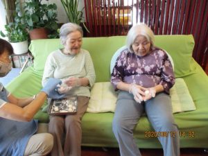 今年の敬老会でのプレゼントは刺繍入りのハンドタオルでした!