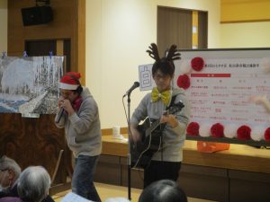 心が躍るクリスマスソングや熊本の民謡に合わせた手遊びで楽しませていただき、会場の皆さんの笑顔が弾け、とても和やかなムード♬
