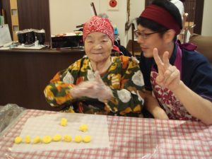 今回は、芋団子ぜんざいを皆様とご一緒に作りました。