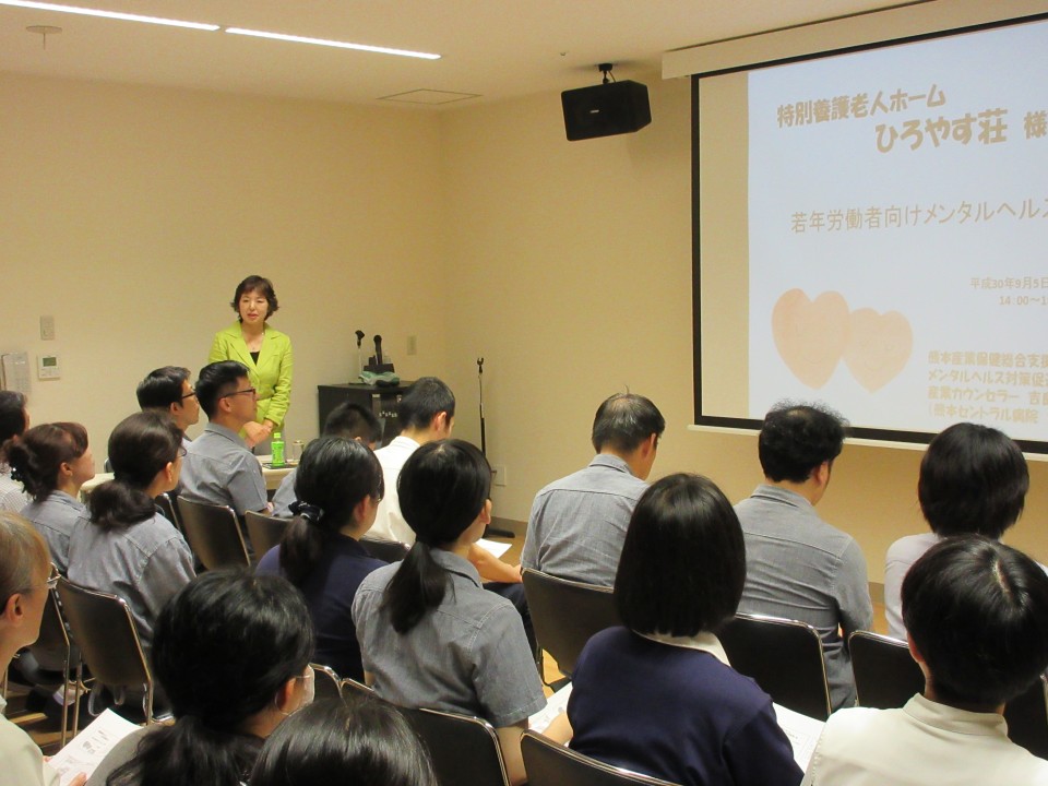 今回は、熊本産業保健総合支援センターのメンタルヘルス対策促進員である吉良宗子講師(熊本セントラル病院 検診センター)に講義をしていただきました。
