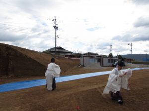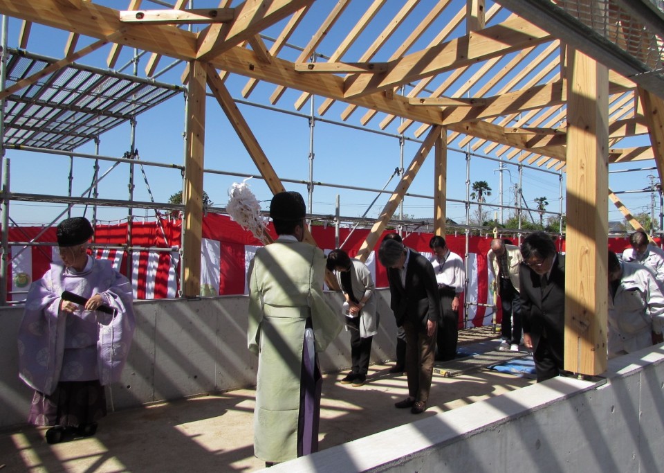 雲一つ無い青空の下、サービス付高齢者住宅「南天倶楽部ひいらぎハウス」の上棟式の神事が厳かに執り行われました。
