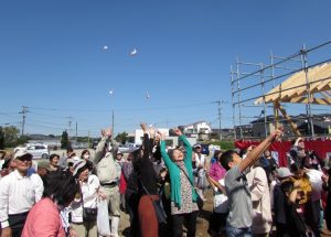 当日は100名を超える地域の方々が集まってくださり、最近では珍しい餅投げも行いました。お天気にも恵まれ、子供さんも多く来てくださり、紅白餅の他お菓子もたくさん撒かれました!